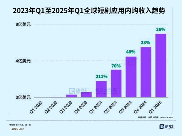 2025年第一季度,美国短剧收入环比增长20%接近3.5亿美元,贡献了全球短剧应用总收入的近一半。