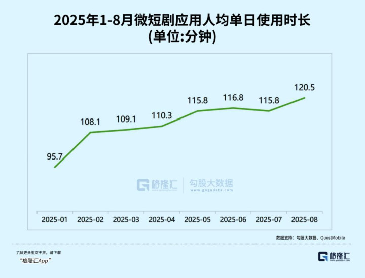 不仅如此,如今,微短剧应用的人均单日使用时长达到120.5分钟,已超过长视频应用。